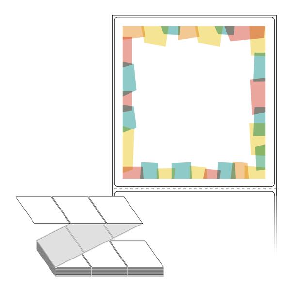 텍스트, 이미지, 도형, 바코드 등을 쉽게 출력 할 수 있으며 엑셀파일 등의 연동도 가능합니다. 라벨 모양대로 이미 칼선이 있기 때문에 출력 후 바로 떼어서 사용 하시면 됩니다.