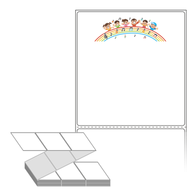 롤라벨보다 편리한 제트라벨, 규격코드: ZL100107, 디자인코드: DN097(오늘도 즐거운 무지개반 아이들), 100 x 107.067 (mm)