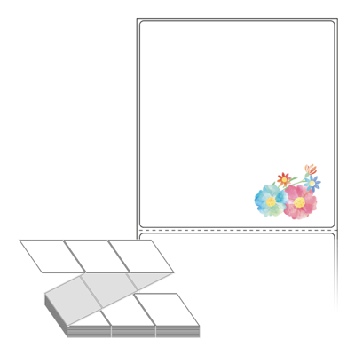 롤라벨보다 편리한 제트라벨, 규격코드: ZL100107, 디자인코드: DV063(수채화풍 꽃그림), 100 x 107.067 (mm)