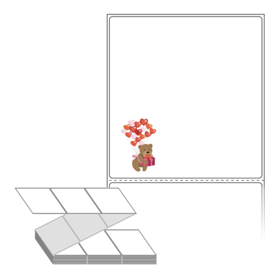 롤라벨보다 편리한 제트라벨, 규격코드: ZL100107, 디자인코드: DX017(러브메신저 곰돌이), 100 x 107.067 (mm)