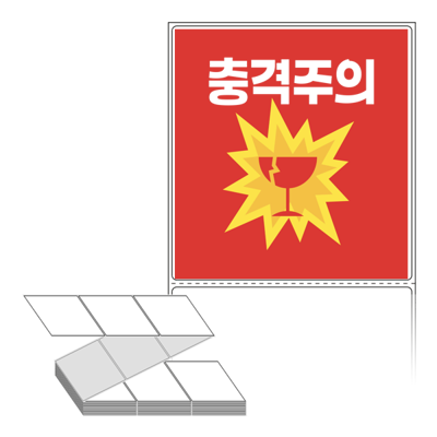 롤라벨보다 편리한 제트라벨, 규격코드: ZL100107, 디자인코드: FA131(충격주의), 100 x 107.067 (mm)