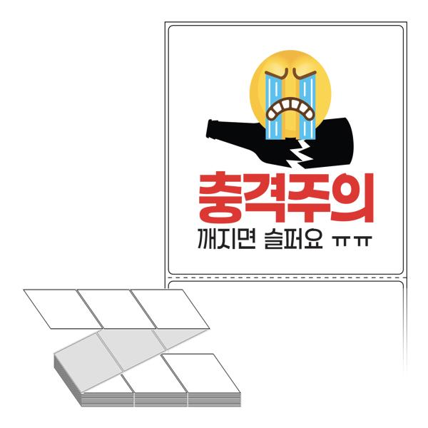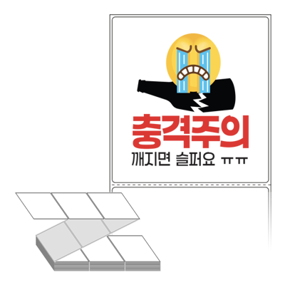 롤라벨보다 편리한 제트라벨, 규격코드: ZL100107, 디자인코드: FA134(충격주의 깨지면 슬퍼요 ㅠㅠ), 100 x 107.067 (mm)