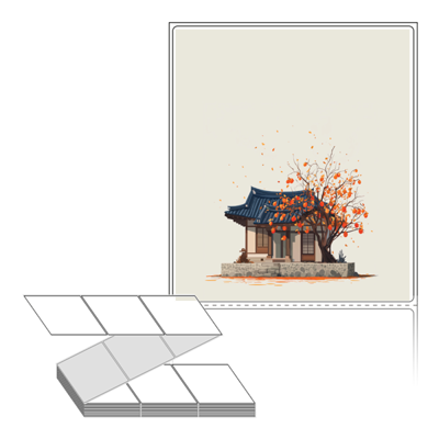 롤라벨보다 편리한 제트라벨, 규격코드: ZL100116, 디자인코드: DA1347(감나무가 있는 기와집), 100 x 115.533 (mm)