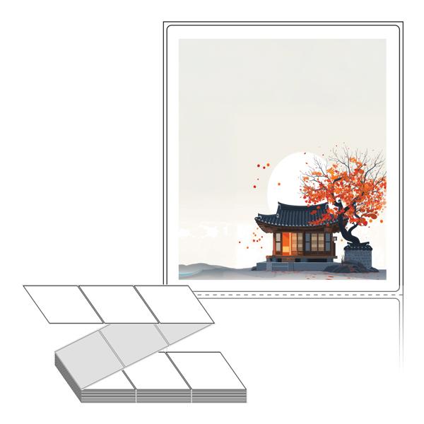 롤라벨보다 편리한 제트라벨, 규격코드: ZL100116, 디자인코드: DA1348(감나무가 있는 기와집2), 100 x 115.533 (mm)