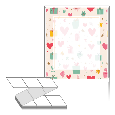 롤라벨보다 편리한 제트라벨, 규격코드: ZL100116, 디자인코드: DA1393(선물 하트 포장지), 100 x 115.533 (mm)