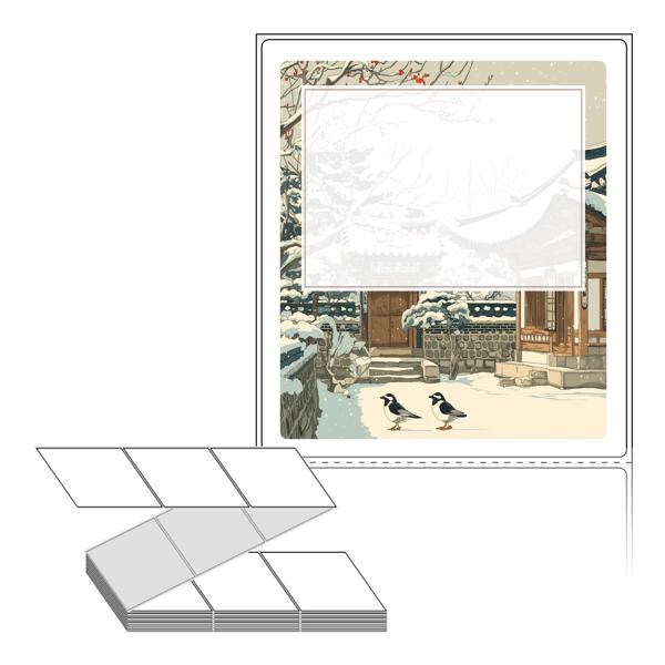 롤라벨보다 편리한 제트라벨, 규격코드: ZL100116, 디자인코드: DA1546(눈내린 설날 아침), 100 x 115.533 (mm)