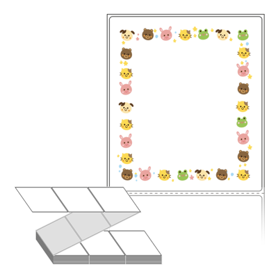 롤라벨보다 편리한 제트라벨, 규격코드: ZL100116, 디자인코드: DA839(귀여운 동물 친구들), 100 x 115.533 (mm)