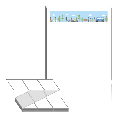 텍스트, 이미지, 도형, 바코드 등을 쉽게 출력 할 수 있으며 엑셀파일 등의 연동도 가능합니다. 라벨 모양대로 이미 칼선이 있기 때문에 출력 후 바로 떼어서 사용 하시면 됩니다.