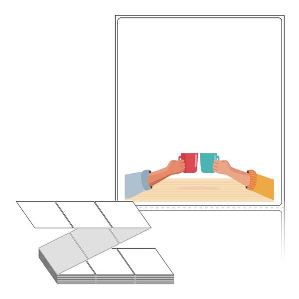 텍스트, 이미지, 도형, 바코드 등을 쉽게 출력 할 수 있으며 엑셀파일 등의 연동도 가능합니다. 라벨 모양대로 이미 칼선이 있기 때문에 출력 후 바로 떼어서 사용 하시면 됩니다.