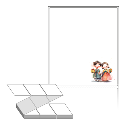 텍스트, 이미지, 도형, 바코드 등을 쉽게 출력 할 수 있으며 엑셀파일 등의 연동도 가능합니다. 라벨 모양대로 이미 칼선이 있기 때문에 출력 후 바로 떼어서 사용 하시면 됩니다.