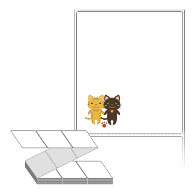 텍스트, 이미지, 도형, 바코드 등을 쉽게 출력 할 수 있으며 엑셀파일 등의 연동도 가능합니다. 라벨 모양대로 이미 칼선이 있기 때문에 출력 후 바로 떼어서 사용 하시면 됩니다.