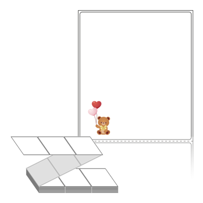 롤라벨보다 편리한 제트라벨, 규격코드: ZL100116, 디자인코드: DX028(사랑의 전령 곰), 100 x 115.533 (mm)