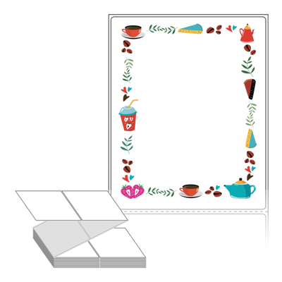 롤라벨보다 편리한 제트라벨, 규격코드: ZL100124, 디자인코드: DA101(커피와 디저트), 100 x 124 (mm)