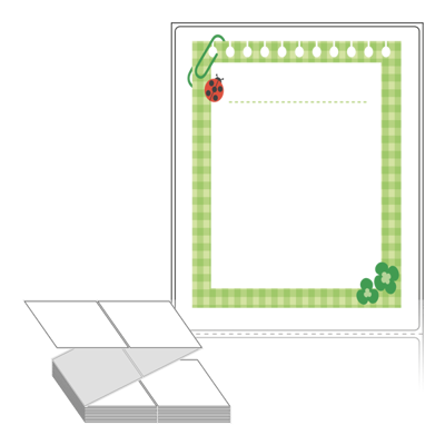 디자인 라벨/디자인 태그는 칼선만 들어가 있는 기존 제품과 달리, 프레임, 캐릭터, 배경 등이 특수 장비를 통해 뛰어난 품질로 미리 인쇄가 되어 있는 제품입니다. 인쇄가 되어 있지 않은 부분만 디자인 해서 프린터에서 출력하여 사용 하시면 됩니다.