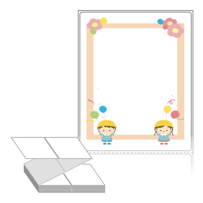 디자인 라벨/디자인 태그는 칼선만 들어가 있는 기존 제품과 달리, 프레임, 캐릭터, 배경 등이 특수 장비를 통해 뛰어난 품질로 미리 인쇄가 되어 있는 제품입니다. 인쇄가 되어 있지 않은 부분만 디자인 해서 프린터에서 출력하여 사용 하시면 됩니다.