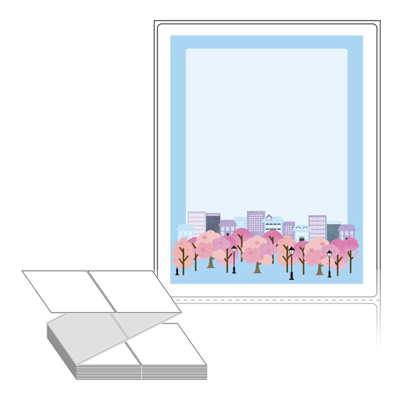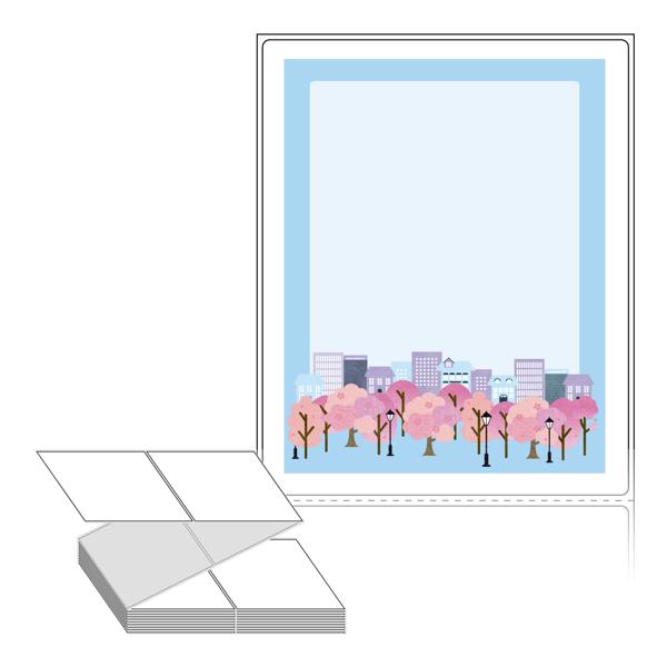 롤라벨보다 편리한 제트라벨, 규격코드: ZL100124, 디자인코드: DA1282(벚꽃 흩날리는 도시 풍경), 100 x 124 (mm)