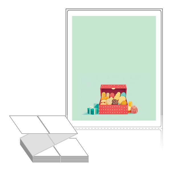 텍스트, 이미지, 도형, 바코드 등을 쉽게 출력 할 수 있으며 엑셀파일 등의 연동도 가능합니다. 라벨 모양대로 이미 칼선이 있기 때문에 출력 후 바로 떼어서 사용 하시면 됩니다.