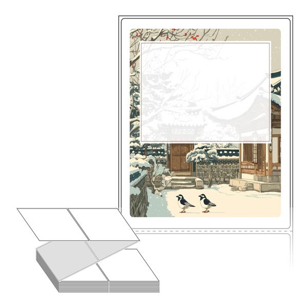 롤라벨보다 편리한 제트라벨, 규격코드: ZL100124, 디자인코드: DA1546(눈내린 설날 아침), 100 x 124 (mm)