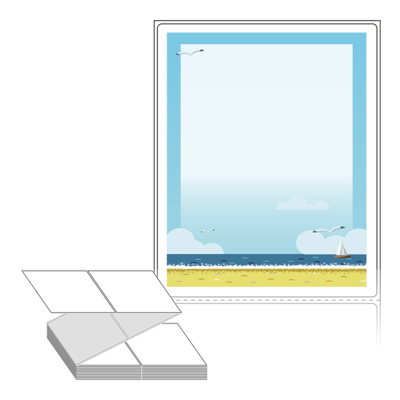텍스트, 이미지, 도형, 바코드 등을 쉽게 출력 할 수 있으며 엑셀파일 등의 연동도 가능합니다. 라벨 모양대로 이미 칼선이 있기 때문에 출력 후 바로 떼어서 사용 하시면 됩니다.