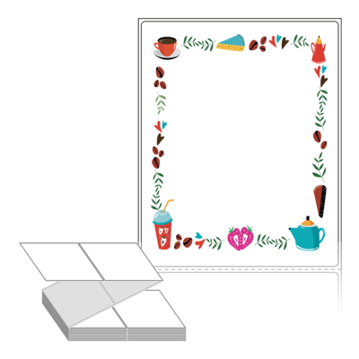 롤라벨보다 편리한 제트라벨, 규격코드: ZL100124, 디자인코드: DA415(커피와 디저트), 100 x 124 (mm)