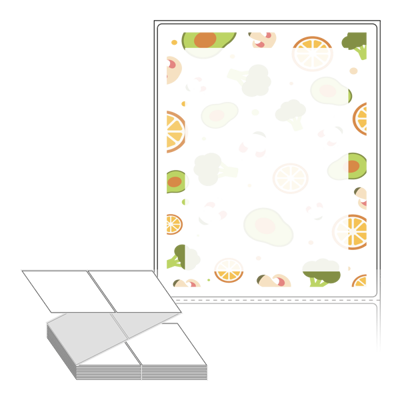 텍스트, 이미지, 도형, 바코드 등을 쉽게 출력 할 수 있으며 엑셀파일 등의 연동도 가능합니다. 라벨 모양대로 이미 칼선이 있기 때문에 출력 후 바로 떼어서 사용 하시면 됩니다.