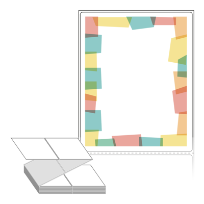 텍스트, 이미지, 도형, 바코드 등을 쉽게 출력 할 수 있으며 엑셀파일 등의 연동도 가능합니다. 라벨 모양대로 이미 칼선이 있기 때문에 출력 후 바로 떼어서 사용 하시면 됩니다.