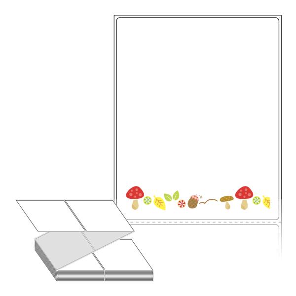 롤라벨보다 편리한 제트라벨, 규격코드: ZL100124, 디자인코드: DP106(버섯,풀잎,도토리,가을), 100 x 124 (mm)