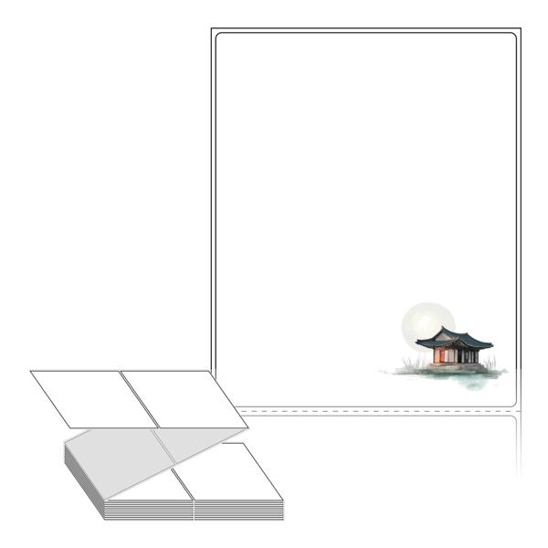 롤라벨보다 편리한 제트라벨, 규격코드: ZL100124, 디자인코드: DV213(보름달이 뜨는 기와집), 100 x 124 (mm)