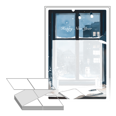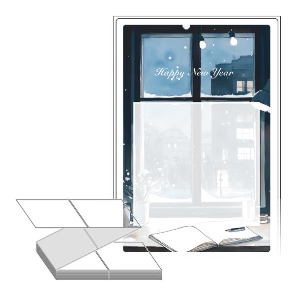 롤라벨보다 편리한 제트라벨, 규격코드: ZL100149, 디자인코드: DA1503(겨울 창가에서, 해피뉴이어), 100 x 149.4 (mm)