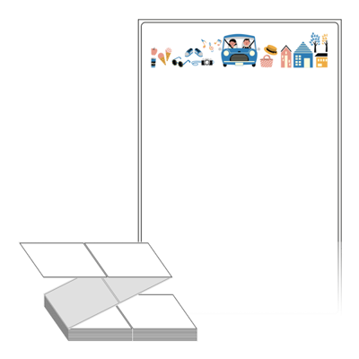 텍스트, 이미지, 도형, 바코드 등을 쉽게 출력 할 수 있으며 엑셀파일 등의 연동도 가능합니다. 라벨 모양대로 이미 칼선이 있기 때문에 출력 후 바로 떼어서 사용 하시면 됩니다.