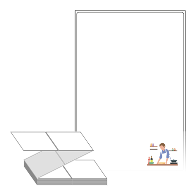롤라벨보다 편리한 제트라벨, 규격코드: ZL100149, 디자인코드: DV134(맛있게 만들어 드릴께요), 100 x 149.4 (mm)