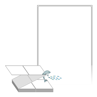 롤라벨보다 편리한 제트라벨, 규격코드: ZL100149, 디자인코드: DX082(아기돌고래 핀과 놀아요), 100 x 149.4 (mm)