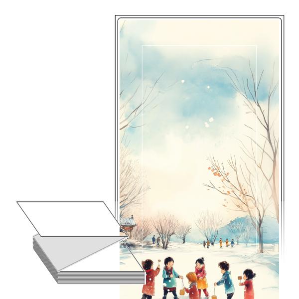 롤라벨보다 편리한 제트라벨, 규격코드: ZL100200, 디자인코드: DA1523(즐거운 겨울날의 한장면), 100 x 200.2 (mm)
