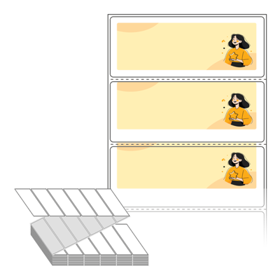 텍스트, 이미지, 도형, 바코드 등을 쉽게 출력 할 수 있으며 엑셀파일 등의 연동도 가능합니다. 라벨 모양대로 이미 칼선이 있기 때문에 출력 후 바로 떼어서 사용 하시면 됩니다.