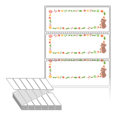 디자인 라벨/디자인 태그는 칼선만 들어가 있는 기존 제품과 달리, 프레임, 캐릭터, 배경 등이 특수 장비를 통해 뛰어난 품질로 미리 인쇄가 되어 있는 제품입니다. 인쇄가 되어 있지 않은 부분만 디자인 해서 프린터에서 출력하여 사용 하시면 됩니다.