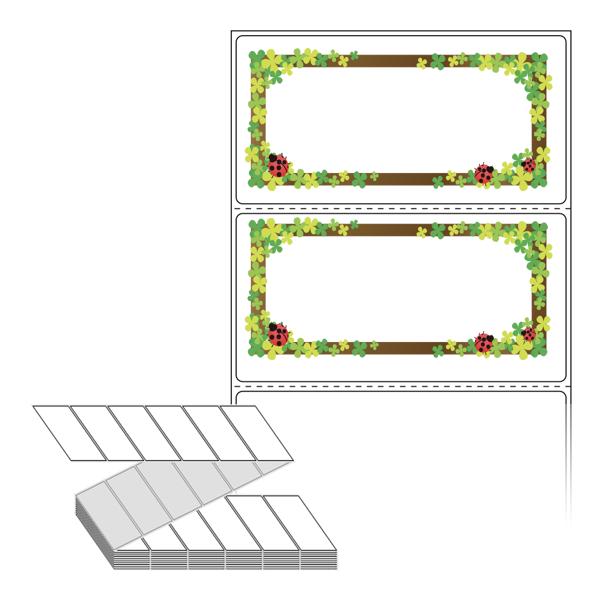 디자인 라벨/디자인 태그는 칼선만 들어가 있는 기존 제품과 달리, 프레임, 캐릭터, 배경 등이 특수 장비를 통해 뛰어난 품질로 미리 인쇄가 되어 있는 제품입니다. 인쇄가 되어 있지 않은 부분만 디자인 해서 프린터에서 출력하여 사용 하시면 됩니다.