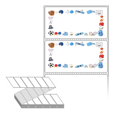 롤라벨보다 편리한 제트라벨, 규격코드: ZL10052, 디자인코드: DA777(어떤 스포츠 좋아하세요?), 100 x 52.033 (mm)