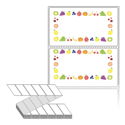 텍스트, 이미지, 도형, 바코드 등을 쉽게 출력 할 수 있으며 엑셀파일 등의 연동도 가능합니다. 라벨 모양대로 이미 칼선이 있기 때문에 출력 후 바로 떼어서 사용 하시면 됩니다.