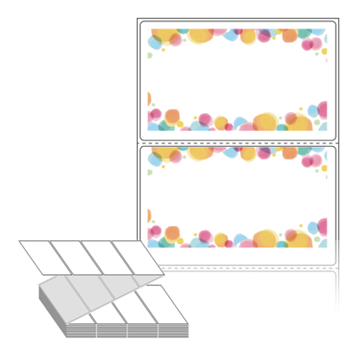 텍스트, 이미지, 도형, 바코드 등을 쉽게 출력 할 수 있으며 엑셀파일 등의 연동도 가능합니다. 라벨 모양대로 이미 칼선이 있기 때문에 출력 후 바로 떼어서 사용 하시면 됩니다.
