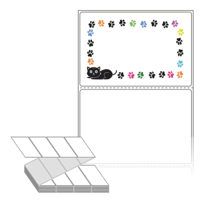 텍스트, 이미지, 도형, 바코드 등을 쉽게 출력 할 수 있으며 엑셀파일 등의 연동도 가능합니다. 라벨 모양대로 이미 칼선이 있기 때문에 출력 후 바로 떼어서 사용 하시면 됩니다.