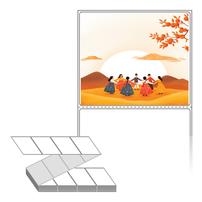 롤라벨보다 편리한 제트라벨, 규격코드: ZL10086, 디자인코드: DA1339(강강술래 같이해요), 100 x 85.9 (mm)