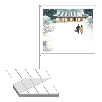롤라벨보다 편리한 제트라벨, 규격코드: ZL10086, 디자인코드: DA1580(눈내린 귀향의 따뜻한 길), 100 x 85.9 (mm)