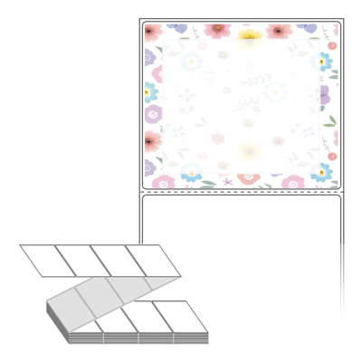롤라벨보다 편리한 제트라벨, 규격코드: ZL10086, 디자인코드: DA332(플라워 패턴 프레임), 100 x 85.9 (mm)