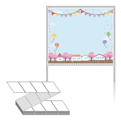 롤라벨보다 편리한 제트라벨, 규격코드: ZL10086, 디자인코드: DA585(우리마을 봄축제에 놀러오세요), 100 x 85.9 (mm)
