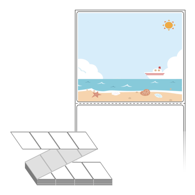 텍스트, 이미지, 도형, 바코드 등을 쉽게 출력 할 수 있으며 엑셀파일 등의 연동도 가능합니다. 라벨 모양대로 이미 칼선이 있기 때문에 출력 후 바로 떼어서 사용 하시면 됩니다.