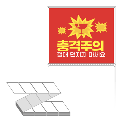롤라벨보다 편리한 제트라벨, 규격코드: ZL10086, 디자인코드: FA129(충격주의 절대 던지지 마세요), 100 x 85.9 (mm)