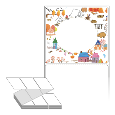 롤라벨보다 편리한 제트라벨, 규격코드: ZL10090, 디자인코드: DA1065(야외 캠핑장에서), 100 x 90.133 (mm)