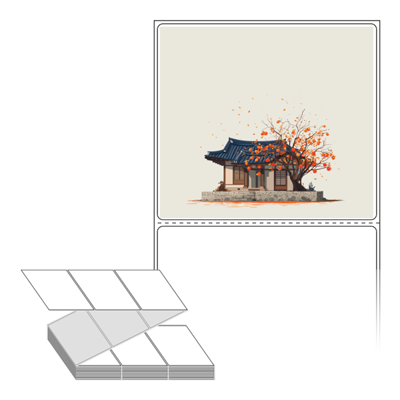 롤라벨보다 편리한 제트라벨, 규격코드: ZL10090, 디자인코드: DA1347(감나무가 있는 기와집), 100 x 90.133 (mm)