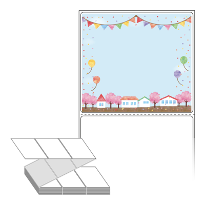 롤라벨보다 편리한 제트라벨, 규격코드: ZL10090, 디자인코드: DA585(우리마을 봄축제에 놀러오세요), 100 x 90.133 (mm)