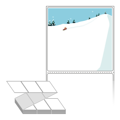 롤라벨보다 편리한 제트라벨, 규격코드: ZL10098, 디자인코드: DA1125(눈썰매 타기), 100 x 98 (mm)